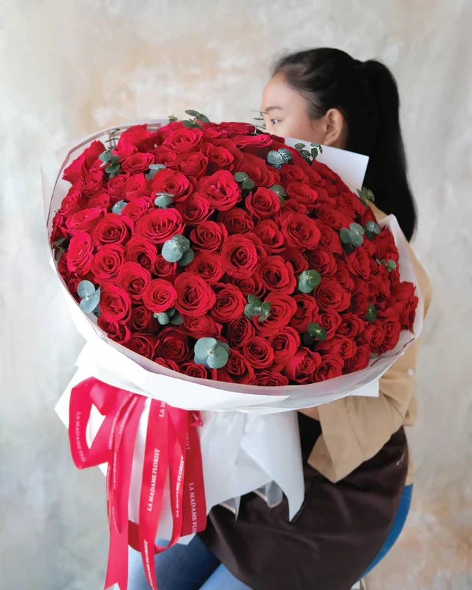 "Buket mawar merah jumbo, hadir dalam ukuran besar yang memukau untuk momen spesial yang tak terlupakan."