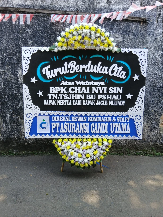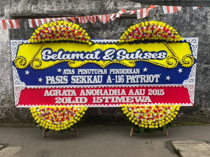 "Pilihan tepat untuk ucapan perpisahan, kenaikan jabatan, atau peresmian kantor. Desain formal dengan kombinasi bunga kain dan bunga segar yang mempertegas kesan prestisius."